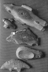 Oficinas líticas: Sabe aquelas marcas nas pedras negras que parecem “unhadas de dinossauro e pratos de índios”, como diziam os antigos? Pois bem, ali os sambaquianos faziam suas peças de pedra, desgastando uma pedra na outra, saiam facas, flechas, baleias, golfinhos e utensílios práticos para o dia a dia (veja as fotos abaixo).